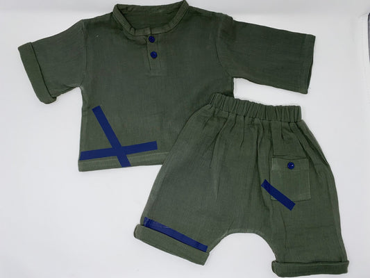 Baby Sommer Set Zweiteiler Hemd & Pumphose Khaki Baumwolle