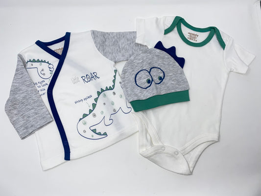 Baby Set 4 Teiler Jäckchen Body Strampel Hose Mütze Mützchen Dinosaurier Dinos Jungen