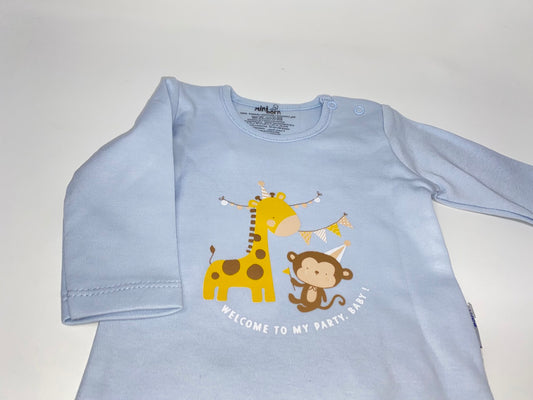 Baby Langarm Body Jungen Hellblau Giraffe aus Baumwolle