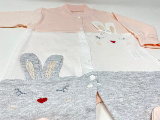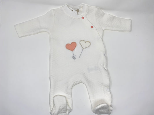 Baby Strampler Einteiler Overall Langarm mit Herz / Herzen Applikation - Rosa -