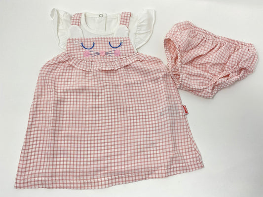 Baby Sommer Set Zweiteiler Kleidchen mit Bloomer Kätzchen Applikation