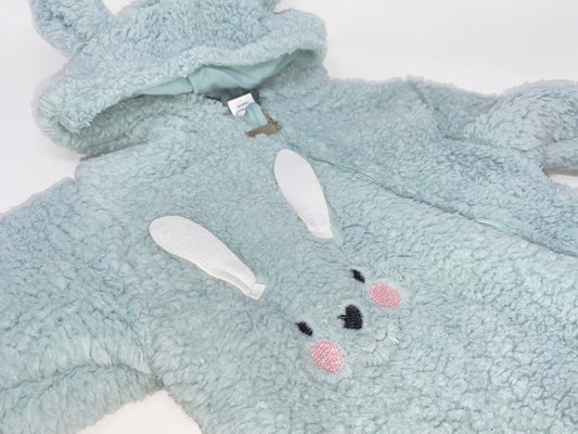 Baby Teddy Fleece / Plüsch Overall mit Kapuze Kapuzenoverall mit Hasen Ohren Mint für Mädchen aus Baumwolle