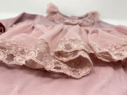 Baby Strampler mit Röckchen aus Spitze - Rosa / Rose