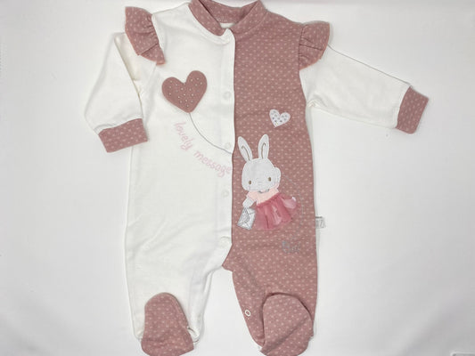 Baby Strampel Hose 3 Teile mit Füßlingen mit Hasen Häschen für Mädchen