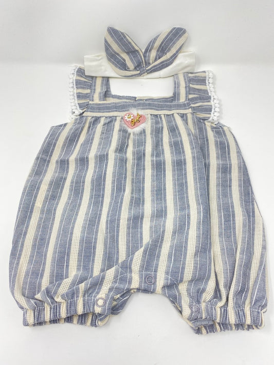 Baby Set Jumpsuit & Haarband Blau/Beige