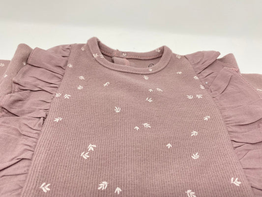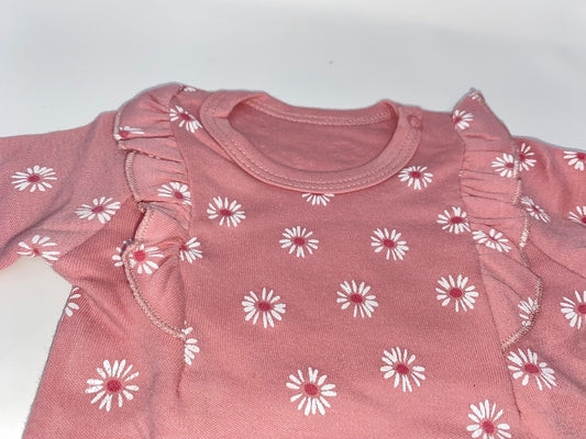 Baby Body Langarm Rosa mit Rüschen & Blümchen Blumen Druck