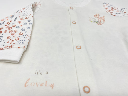 Baby Set 2 Teiler Jersey / Sweat Jäckchen & Strampelhose Hose Blümchen Bambi Reh